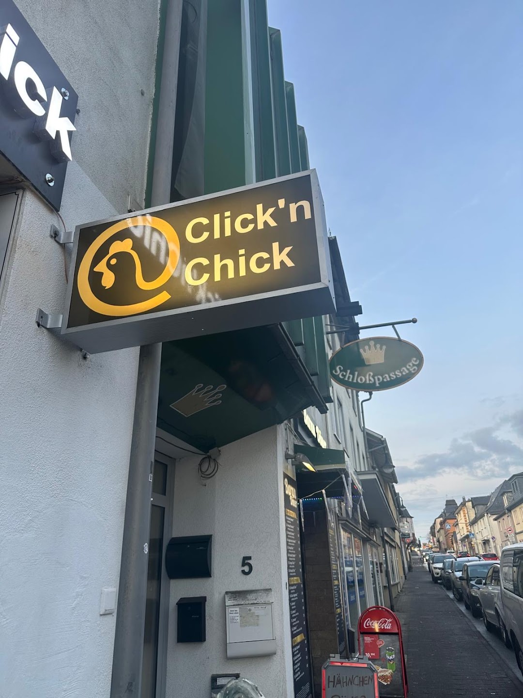 In der Schlosspassage Usingen lädt Click’nChick zu einer heißen, knusprigen Auszeit ein. Außen goldbraun und kross, innen zart und saftig – hier warten frisch zubereitete Hähnchenspezialitäten in vielen Varianten auf dich. Besonders beliebt sind die reich gefüllten Wraps mit zartem Geflügel, knackigem Salat und würzigen Saucen, dazu klassische Lieblingsbeilagen wie knusprige Pommes und weitere herzhafte Extras, die jeden Hunger stillen.